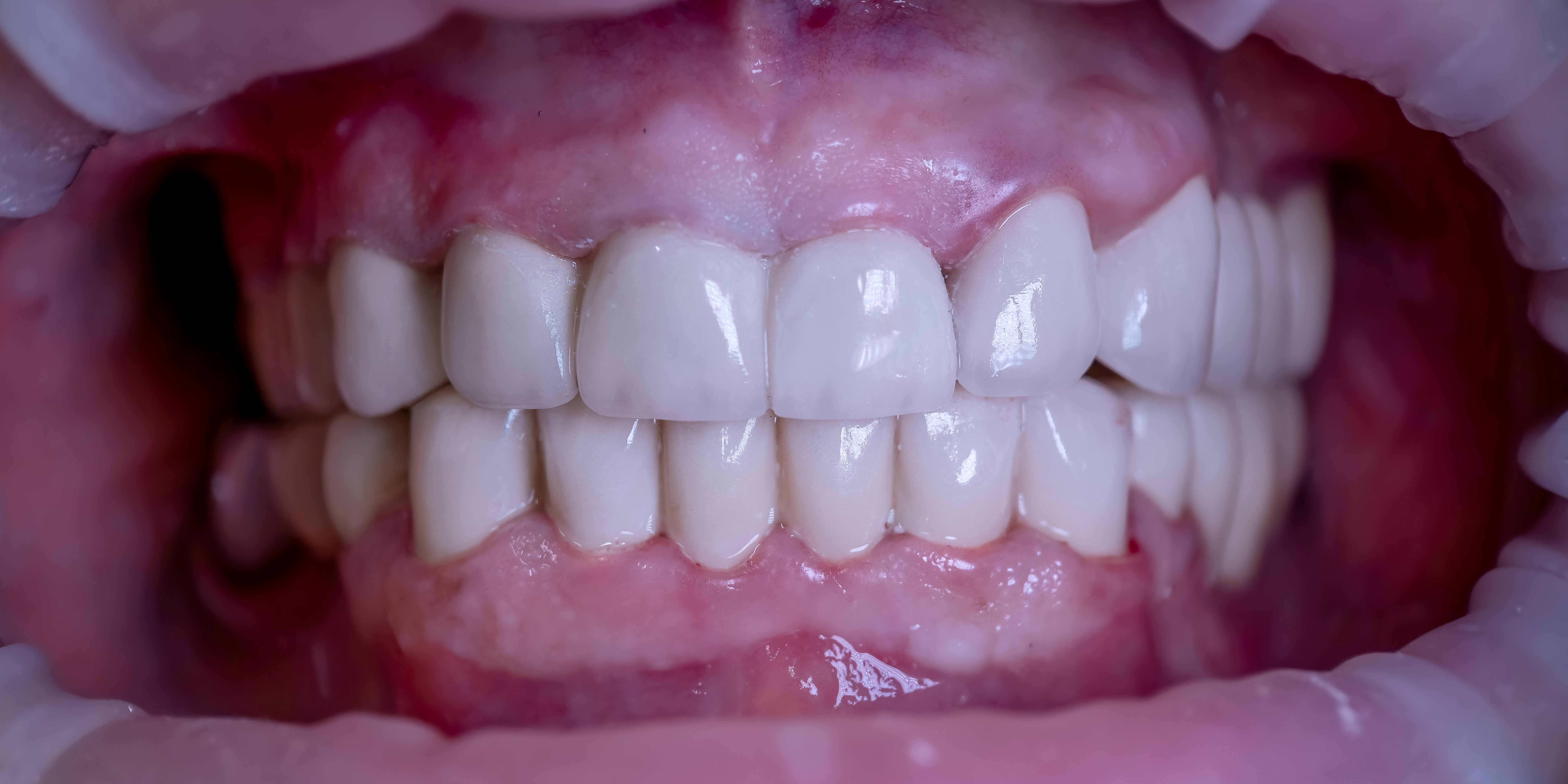 Îndepărtarea lucrării vechi superioare, realizarea unei lucrări ceramice din 14 de elemente ceramice și închiderea breșelor edentate inferior